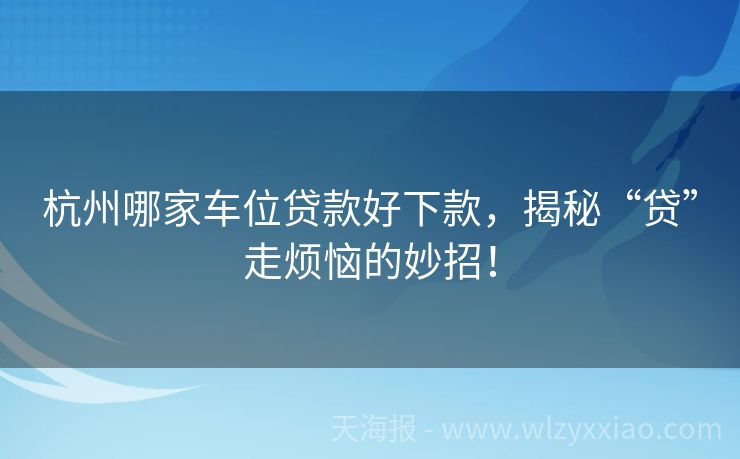 杭州哪家车位贷款好下款,揭秘“贷”走烦恼的妙招! 杭州车位贷款大揭秘:哪家最容易“贷”走你的烦恼? 在杭州这座“堵城”,买车容易停车难,车位成了刚需中的刚需!可动辄几十万的车位费,让不少人直呼“钱包比脸还干净”。这时候,车位贷款就成了救命稻草。但问题来了:杭州哪家车位贷款好下款?别急,今天咱们就化身“贷款侦探”,用专业视角+趣味案例,帮你找到最适合...