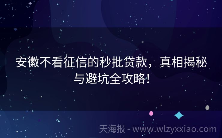 安徽不看征信的秒批贷款,真相揭秘与避坑全攻略! 安徽不看征信的秒批贷款?真相与避坑指南来啦! 最近总听到有小伙伴在问:“安徽有没有不看征信就能秒批的贷款呀?”每次听到这个问题,我都忍不住想敲敲小脑袋——哪有这么好的事儿!不过别急,作为金融圈摸爬滚打多年的“老油条”,今天就带大家扒一扒这类贷款的真相,顺便分享几个真实案例,帮你避开那些隐藏的“大坑”...