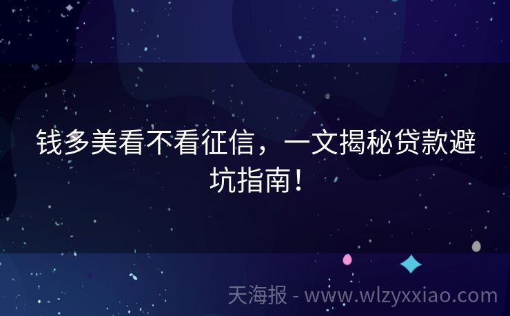 钱多美看不看征信,一文揭秘贷款避坑指南! 钱多美看不看征信?一篇文章带你搞清楚贷款征信那些事儿! 最近身边好多朋友都在问:“钱多美这类平台到底看不看征信呀?”这个问题就像夏天的冰西瓜,大家都想知道答案!毕竟在这个“信用即财富”的时代,征信报告就像咱们的金融身份证,直接影响贷款申请的成功率。今天咱们就唠唠钱多美和征信的那些事儿,顺便分享几个真...