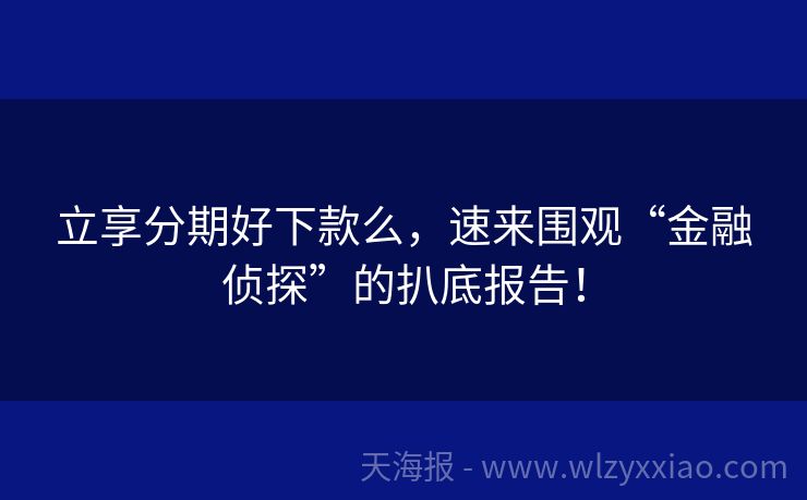 立享分期好下款么,速来围观“金融侦探”的扒底报告! 立享分期好下款么?一篇文章带你扒清它的“底细”! 最近身边好多朋友都在讨论“立享分期”,说它下款快、流程简单,简直是急需用钱时的“救星”。可也有人嘀咕:“立享分期好下款么?会不会有啥坑?”别急,今天咱们就化身“金融侦探”,把立享分期的“底细”扒个底朝天,顺便聊聊贷款那些事儿! 小王的“分期初体验” ...