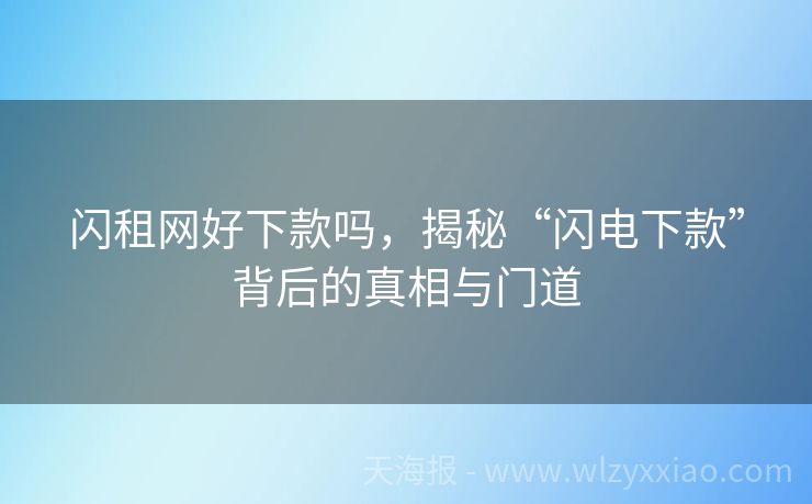 闪租网好下款吗,揭秘“闪电下款”背后的真相与门道 闪租网好下款吗?一篇文章让你秒懂“闪电下款”背后的秘密! 最近,朋友小李在朋友圈吐槽:“急着用钱买设备,结果跑了好几家平台,要么审核慢得像蜗牛,要么直接被拒,心累!”相信不少人都遇到过类似情况——急需资金周转时,总希望找到“秒到账”的靠谱平台。今天咱们就来聊聊“闪租网好下款吗”这个话题,顺便扒一扒“...