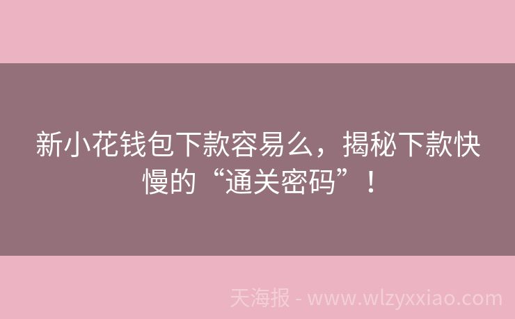 新小花钱包下款容易么,揭秘下款快慢的“通关密码”! 新小花钱包下款容易么?揭秘这款“钱包”的秘密 在贷款江湖里,总有些“神器”被传得神乎其神,比如最近风很大的新小花钱包。有人说它是“救急小能手”,下款快得像闪电;也有人吐槽“申请容易下款难”,仿佛钱包里藏着个“傲娇小怪兽”。新小花钱包下款到底容不容易?今天咱们就扒一扒它的“真面目”,顺便讲讲贷款那些事...