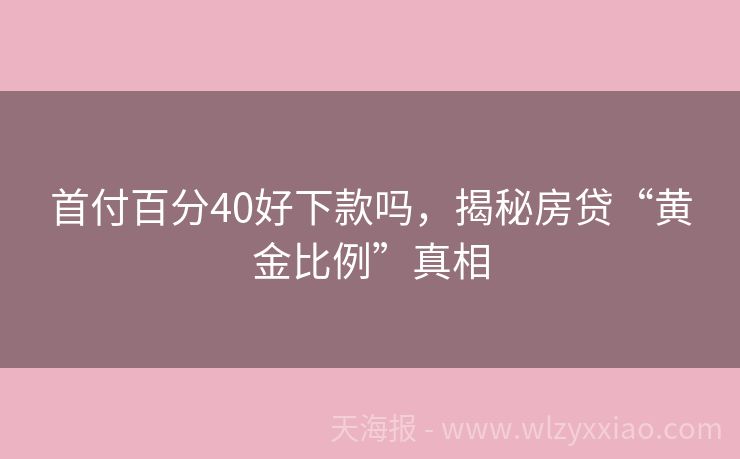 首付百分40好下款吗,揭秘房贷“黄金比例”真相 首付40%好下款吗?揭秘房贷“黄金比例”背后的秘密 “首付交40%,银行是不是会给我发小红花?”朋友小王最近买房时,盯着贷款合同上的“首付比例”犯了嘀咕。他听说首付越高,贷款越容易批,但具体高到40%算不算“安全区”?今天咱们就化身“贷款小侦探”,用真实案例+硬核知识,把这个问题扒得明明白白! 一、...