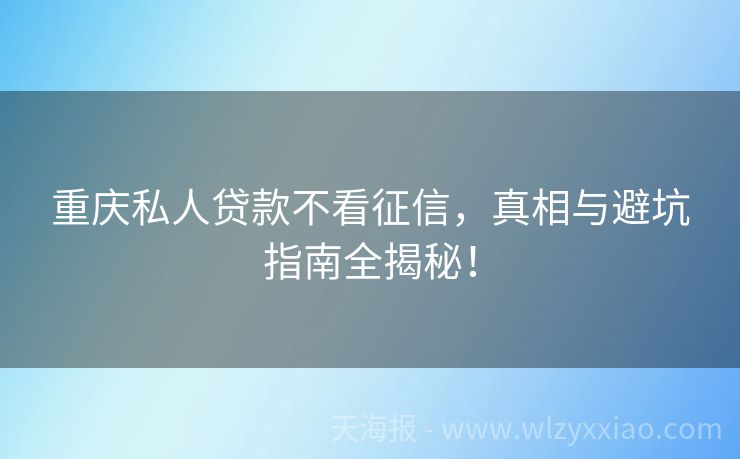重庆私人贷款不看征信,真相与避坑指南全揭秘! 重庆私人贷款不看征信?真相大揭秘与实用指南来啦! 在重庆这座充满活力的城市里,生活节奏快得像火锅里的辣椒,让人应接不暇。有时候,咱们可能会遇到点小麻烦,比如突然需要一笔资金来应急,但征信记录却不太给力,这时候,“重庆私人贷款不看征信”的说法就像一束光,照进了不少人的心里。不过,这束光到底是温暖还是陷...