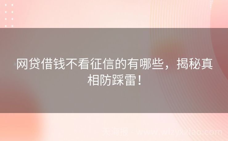 网贷借钱不看征信的有哪些,揭秘真相防踩雷! 网贷借钱不看征信的有哪些?揭秘“特殊通道”背后的真相! “叮咚——”手机又弹出一条贷款广告:“无需征信,秒批5万!”小王盯着屏幕愣了愣,想起上周刚被某银行拒贷的经历,手指悬在“立即申请”上犹豫不决。这样的场景,是不是像极了急需用钱的你?今天咱们就来聊聊“网贷借钱不看征信”的那些事儿,顺便揭秘几个“特...
