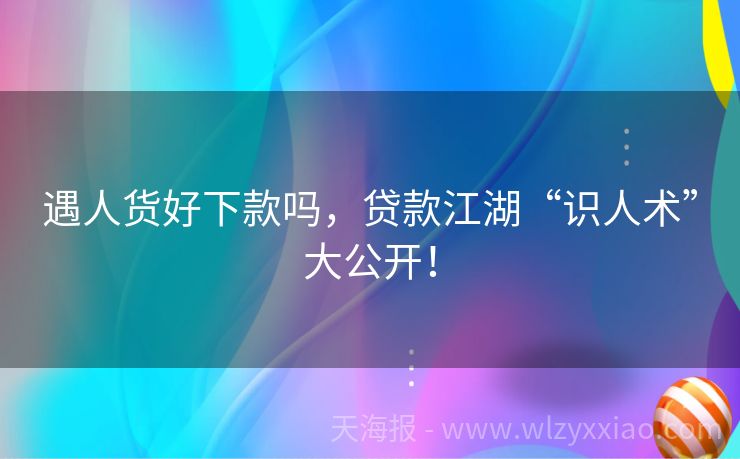 遇人货好下款吗,贷款江湖“识人术”大公开! 遇人货好下款吗?贷款江湖的“识人术”大揭秘! 最近总听朋友念叨:“现在贷款咋这么难?要是能遇到个靠谱的‘人货’(指贷款中介或渠道),是不是就能秒下款啦?”这话听着像武侠小说里的江湖秘籍,但贷款这事儿,还真得有点“识人术”——毕竟,选对渠道比盲目申请重要100倍!今天咱们就唠唠“遇人货到底能不能好下款...