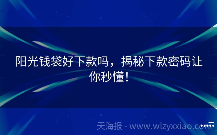 阳光钱袋好下款吗,揭秘下款密码让你秒懂! 阳光钱袋好下款吗?揭秘这款“小太阳”贷款的真实面貌! 最近后台收到好多小伙伴私信:“阳光钱袋好下款吗?”“申请阳光钱袋需要啥条件?”“被拒了还能再试试吗?”别急!今天咱们就化身“贷款侦探”,用专业视角+真实案例,把阳光钱袋的“下款密码”扒个底朝天!先讲个真实故事:同事小王上个月急用钱修车,抱着试试看...