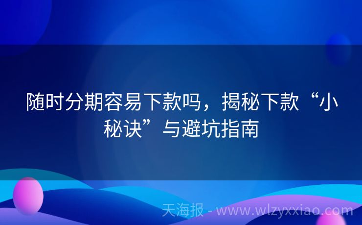 随时分期容易下款吗,揭秘下款“小秘诀”与避坑指南 随时分期容易下款吗?揭秘贷款界的“小确幸”与“大智慧” 在这个“买买买”的时代,分期付款成了不少小伙伴的“救星”。无论是心仪已久的手机,还是突如其来的旅行计划,随时分期似乎总能及时出现,帮你把梦想照进现实。但问题来了,随时分期真的那么容易下款吗?今天,咱们就来聊聊这个话题,顺便分享几个小故事,让你的...
