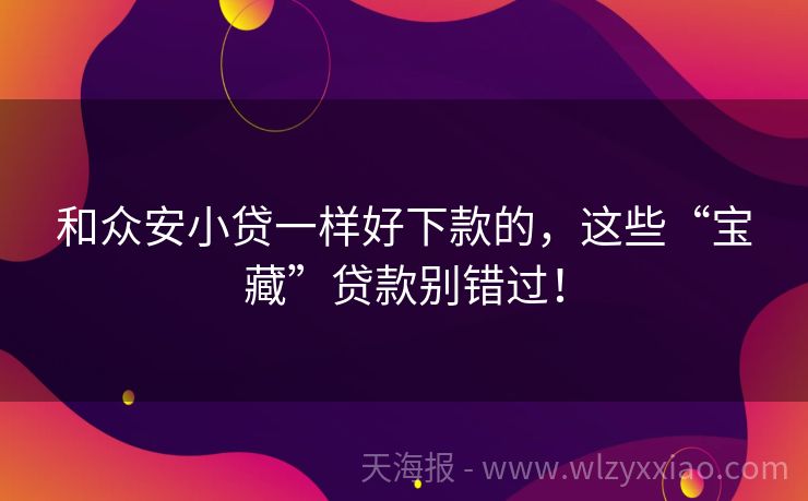 和众安小贷一样好下款的,这些“宝藏”贷款别错过! 和众安小贷一样好下款的“宝藏”贷款指南来啦! 在贷款的江湖里,众安小贷就像一位仗义疏财的“大侠”,凭借着审批快、门槛相对友好的特点,收获了不少借款人的青睐。可江湖那么大,除了众安小贷,还有没有其他“好下款”的贷款“门派”呢?今天咱就来唠唠这个话题,顺便分享几个小故事,让贷款这件事变得像吃巧克力一样轻...