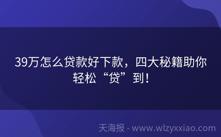 39万怎么贷款好下款,四大秘籍助你轻松“贷”到! 39万怎么贷款好下款?这份攻略让你轻松“贷”走烦恼! 最近,朋友小李遇到了个“甜蜜的负担”——他想扩大自己的咖啡店规模,算来算去,大概需要39万的资金。可这钱从哪儿来呢?小李犯了难,既不想找亲朋好友开口,又担心银行贷款流程复杂、下款慢。其实啊,像小李这样需要大额资金周转的人不在少数,今天咱们就来聊聊...