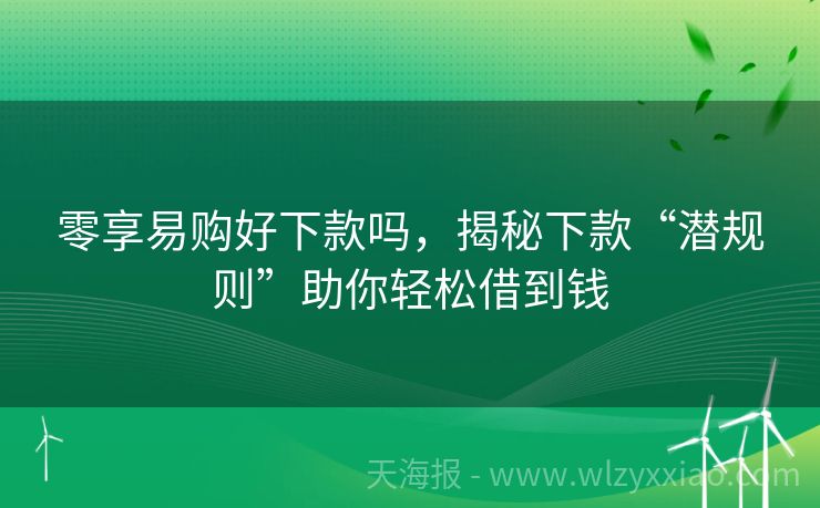 零享易购好下款吗,揭秘下款“潜规则”助你轻松借到钱 零享易购好下款吗?揭秘小额信贷平台的“通关秘籍” 最近朋友小王在朋友圈吐槽:“想借点小钱应急,结果跑断腿问了一圈,不是门槛高得像珠峰,就是利息贵得像黄金!”其实像小王这样急需资金周转的人不在少数,而“零享易购”这类小额信贷平台,因为主打“快速审核、灵活借款”,成了不少人的“救命稻草”。但问题来了——...