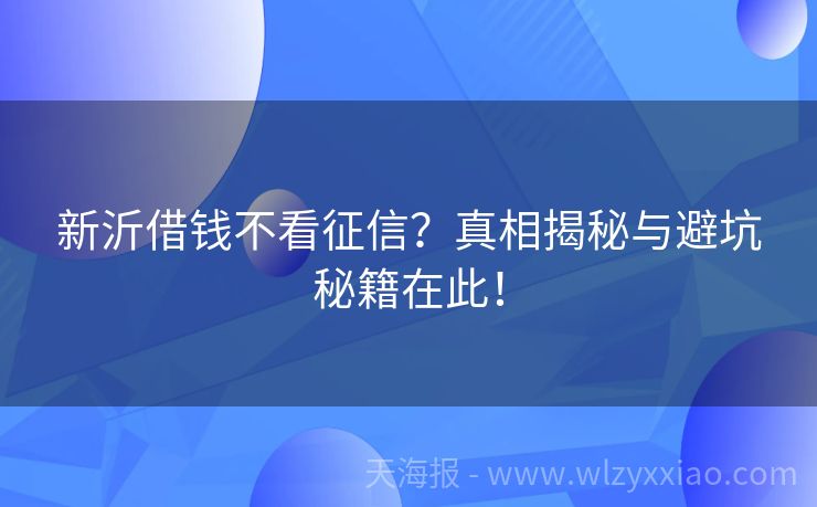 新沂借钱不看征信?真相揭秘与避坑秘籍在此! 新沂借钱不看征信?真相大揭秘与避坑指南来啦! 最近身边好多朋友都在问:“新沂有没有那种借钱不看征信的贷款呀?”仿佛征信成了横在借款人和资金之间的“大魔王”。其实啊,在新沂这座充满烟火气的城市里,大家对资金的需求多种多样,但“不看征信”这事儿,可没那么简单哟!今天咱们就来好好唠唠,顺便分享几个小故事,...