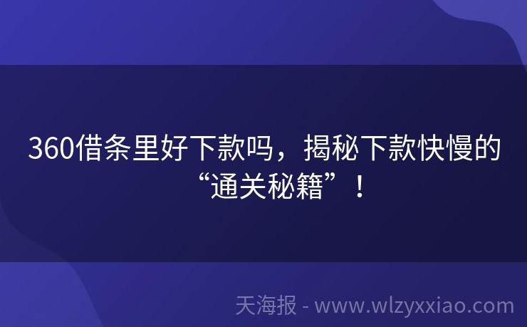 360借条里好下款吗,揭秘下款快慢的“通关秘籍”! 360借条里好下款吗?揭秘贷款圈的“闪电侠”真相! “叮咚——”手机屏幕亮起,小李盯着刚收到的短信愣了神:“您已通过360借条预审,最高可借20万!”他挠挠头,想起上周和朋友聚餐时,老王拍着胸脯说:“360借条下款快得像闪电,我上次急用钱,半小时就到账了!”可小李又有点犹豫——这“闪电侠”真的靠谱吗...