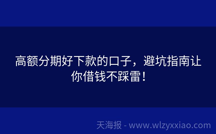 高额分期好下款的口子,避坑指南让你借钱不踩雷! 高额分期好下款的口子?别急,先看完这篇“避坑指南”! 最近身边好多朋友都在问:“有没有那种高额分期、还容易下款的口子啊?”每次听到这种问题,我都忍不住想敲敲他们的脑袋——天上掉馅饼的事儿,哪有那么容易?不过话说回来,现在市面上确实有不少主打“高额分期、快速审批”的贷款产品,但到底哪些靠谱?哪些是坑?...