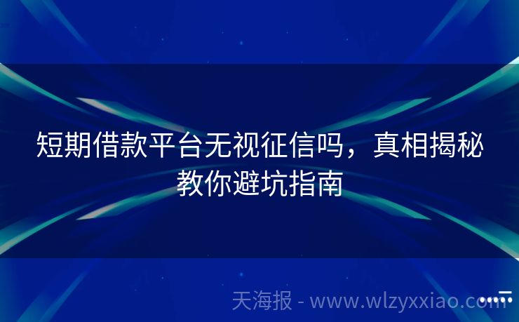 短期借款平台无视征信吗,真相揭秘教你避坑指南 短期借款平台真的无视征信吗?揭秘真相让你少走弯路! 最近,朋友小李急得像热锅上的蚂蚁——他创业需要一笔启动资金,但之前因为信用卡逾期,征信记录上有了“小污点”。他听说“短期借款平台无视征信”,兴奋得差点跳起来,结果申请了十几个平台,要么被拒,要么利息高得吓人。这让他彻底懵了:短期借款平台到底看不看征...