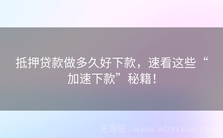 抵押贷款做多久好下款,速看这些“加速下款”秘籍! 抵押贷款做多久好下款?一文读懂“时间密码”! “小王,我急用钱!抵押贷款到底要多久才能下款啊?”上周朋友阿琳举着手机冲进我家,屏幕上是她刚看中的二手房合同,首付还差30万。她急得直跺脚:“听说抵押贷款要等半年?那我房子都要被抢走了!”其实啊,抵押贷款的“下款时间”就像煮泡面——有人3分钟搞定,有人却...