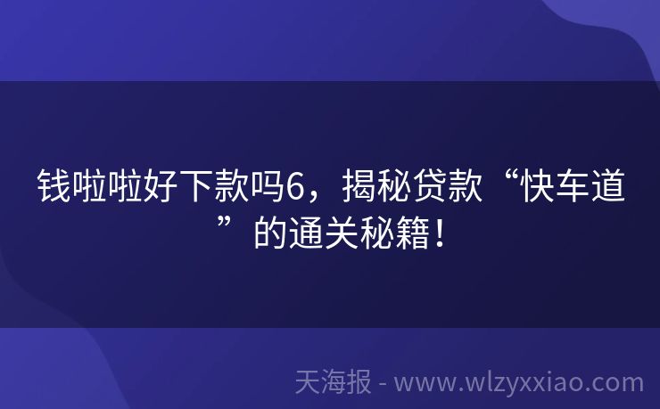 钱啦啦好下款吗6,揭秘贷款“快车道”的通关秘籍! 钱啦啦好下款吗?揭秘贷款圈的“小秘密” 在贷款江湖里,总有一些名字像谜一样吸引着大家,比如“钱啦啦”。每当有人提起它,总会伴随着各种好奇和疑问:“钱啦啦好下款吗?”“申请条件苛刻吗?”“会不会是坑?”别急,今天咱们就化身金融侦探,一起揭开钱啦啦的神秘面纱,顺便聊聊贷款那些事儿! 阿强的“钱啦啦”奇遇...