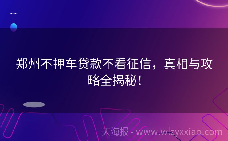 郑州不押车贷款不看征信,真相与攻略全揭秘! 郑州不押车贷款不看征信?真相大揭秘! 在郑州这座充满活力的城市里,不少朋友都有这样的困扰:急需资金周转,但手头只有一辆爱车,又不想因为贷款而失去它的使用权;或者征信有点小瑕疵,担心传统贷款渠道会因此拒绝自己。这时候,“郑州不押车贷款不看征信”的宣传语就像一颗糖衣炮弹,让人既心动又疑惑。今天,咱们就来...