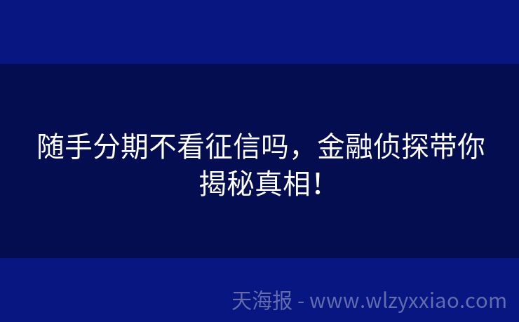随手分期不看征信吗,金融侦探带你揭秘真相! 随手分期不看征信吗?揭秘贷款背后的那些事儿 在快节奏的现代生活里,谁还没个手头紧的时候呢?这时候,“随手分期”这类便捷的贷款服务就像及时雨,让人心动不已。但网上总有人说“随手分期不看征信”,这是真的吗?今天,咱们就化身金融小侦探,一起揭开随手分期与征信之间的神秘面纱,顺便聊聊贷款的那些门道儿! 小李...
