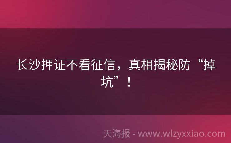 长沙押证不看征信,真相揭秘防“掉坑”! 长沙押证不看征信?贷款江湖里的“神秘传说”大揭秘! 在长沙的贷款江湖里,流传着一种“神秘传说”——押证不看征信就能轻松拿到钱!这听起来就像武侠小说里的绝世秘籍,让不少急需资金周转的朋友心动不已。但真相到底如何呢?今天,咱们就一起揭开这层神秘面纱,聊聊长沙押证不看征信的那些事儿,中间还会穿插几个小故事...