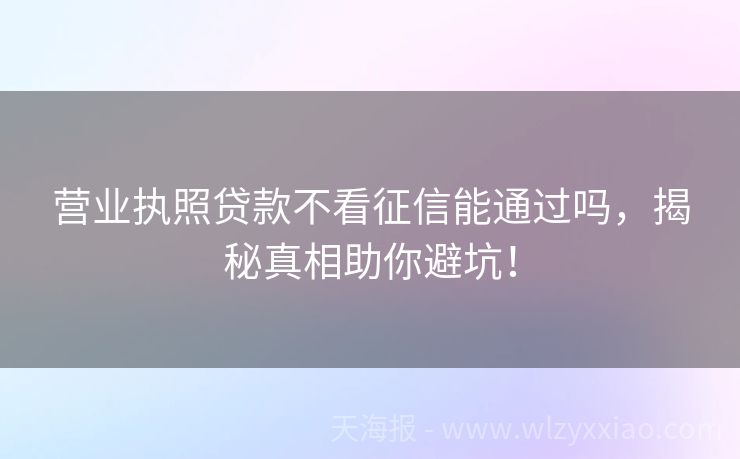 营业执照贷款不看征信能通过吗,揭秘真相助你避坑! 营业执照贷款不看征信能通过吗?揭秘贷款界的“小秘密”! 在创业的江湖里,营业执照就像是咱们的“武林秘籍”,有了它,就能在商海中乘风破浪。但有时候,资金短缺就像突然冒出来的“拦路虎”,让人头疼不已。不少小伙伴就琢磨着,能不能用营业执照去贷款,而且最好是不看征信的那种,这样是不是就能轻松过关了呢?今天,...