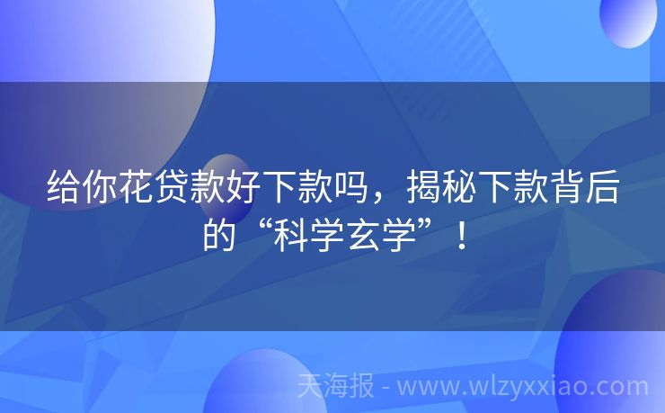 给你花贷款好下款吗,揭秘下款背后的“科学玄学”! 给你花贷款好下款吗?一篇文章说透“下款玄学”! “叮咚——”手机突然弹出一条贷款广告:“给你花贷款,额度高、审批快,3分钟到账!”正在为房租发愁的小王眼睛一亮,手指悬在屏幕上方犹豫了0.01秒——这年头,谁还没被“秒下款”的广告骗过呢?但转念一想,万一这次是真的呢?毕竟,谁不想在缺钱时遇到个“雪中送...