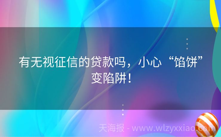 有无视征信的贷款吗,小心“馅饼”变陷阱! 无视征信的贷款?别被“天上掉馅饼”忽悠啦! “征信花了还能借到钱吗?”“有没有那种不看征信的贷款啊?”最近后台收到好多小伙伴的灵魂拷问。作为在金融圈摸爬滚打五年的“贷款小灵通”,今天必须给大家扒一扒这个“无视征信”的神秘传说——毕竟,谁还没个急用钱的时候呢?不过先讲个真实故事:朋友小王去年创业失败,...