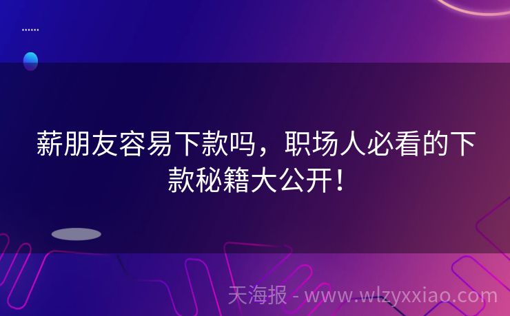薪朋友容易下款吗,职场人必看的下款秘籍大公开! 薪朋友容易下款吗?揭秘这款“职场人救星”的真实面纱 最近后台收到好多私信问:“薪朋友容易下款吗?”“听说这是职场人专属的信用贷,真的吗?”作为在金融圈摸爬滚打多年的“老阿姨”,今天就带大家扒一扒这款主打“工资流水就能贷”的产品,顺便分享几个真实案例,帮你避开踩坑雷区! 薪朋友是什么?为什么总被职场人...
