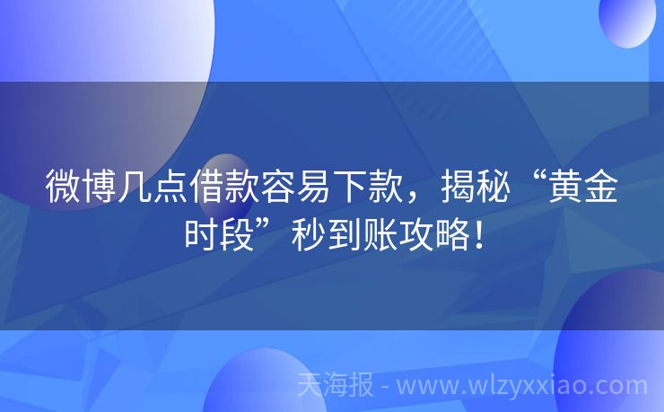微博几点借款容易下款,揭秘“黄金时段”秒到账攻略! 微博借款小秘密:几点申请更容易“秒过”? “叮咚!”凌晨两点,手机屏幕突然亮起,小李揉着眼睛点开微博,发现一条“急需用钱?试试微博借款”的推送。他盯着天花板发了会儿呆——最近房租到期,工资还没发,这推送简直是“及时雨”。可转念一想,半夜申请借款,会不会被系统“打瞌睡”直接拒了?其实啊,微博借款的下款...