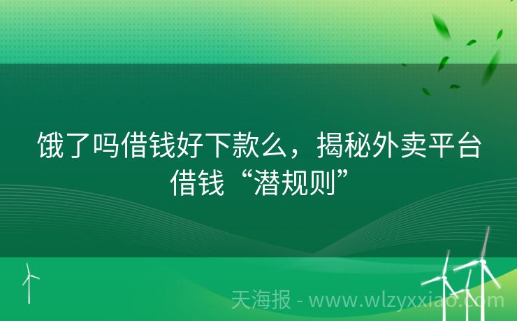 饿了吗借钱好下款么,揭秘外卖平台借钱“潜规则” 饿了吗借钱好下款么?揭秘外卖平台背后的“隐藏服务” “叮咚!您的外卖订单已送达~”当小李摸着饿扁的肚子拆开麻辣烫时,突然收到一条短信:“您有15000元额度待领取,点击链接立即到账!”他盯着手机屏幕愣住——这年头,连外卖APP都能借钱了吗?饿了么(饿了吗为常见误写,本文统一用正确名称)这类生活服务平...