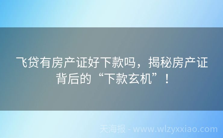 飞贷有房产证好下款吗,揭秘房产证背后的“下款玄机”! 飞贷有房产证好下款吗?一篇文章让你秒懂! 在贷款江湖里,“飞贷”这个名字就像个神秘侠客,总有人悄悄打听:“听说有房产证就能轻松拿下飞贷?这是真的吗?”别急,今天咱们就化身“贷款侦探”,用专业视角+趣味故事,把这事儿扒得明明白白! 房产证是“免死金牌”吗?先讲个真实故事! 小王是个90后创业者,最近公...