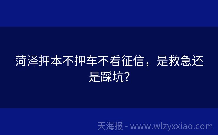 菏泽押本不押车不看征信,是救急还是踩坑? 菏泽押本不押车不看征信:贷款新选择还是隐藏陷阱? 在菏泽这座充满烟火气的城市里,贷款这事儿就像找对象——有人追求“门当户对”(征信完美),有人偏爱“不看颜值”(无视征信),还有人想要“自由恋爱”(押本不押车)。最近,一种“押本不押车不看征信”的贷款方式在菏泽悄然流行,它到底是“真香”还是“大坑”?今...