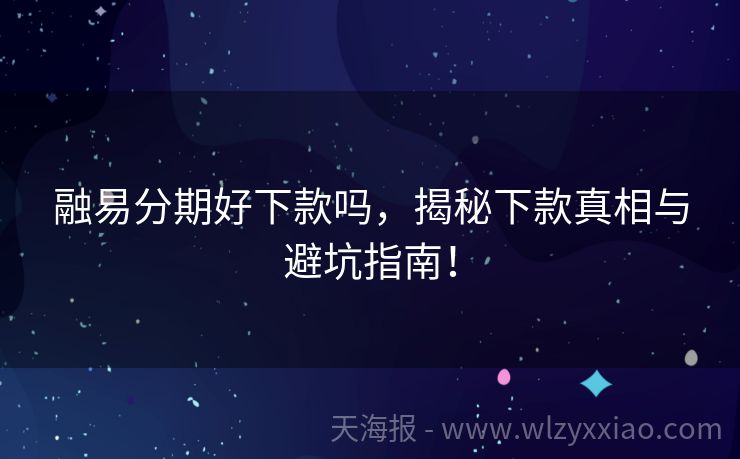 融易分期好下款吗,揭秘下款真相与避坑指南! 融易分期好下款吗?揭秘贷款圈的“温柔陷阱”与“靠谱指南” 最近后台收到好多小伙伴的私信:“融易分期好下款吗?”“听说它审批快,但利息会不会很高?”“万一被拒了怎么办?”别急!作为在贷款圈摸爬滚打五年的“老江湖”,今天就用一篇文章把融易分期的“底裤”扒干净,顺便穿插几个真实小故事,让你笑着看懂贷款那些...