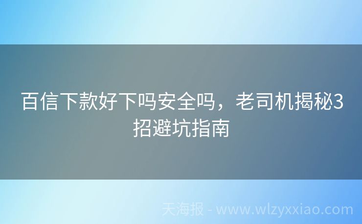 百信下款好下吗安全吗,老司机揭秘3招避坑指南 百信下款好下吗安全吗?一篇文章给你讲明白! 最近好多小伙伴在后台问我:“百信下款好下吗安全吗?”作为金融圈摸爬滚打多年的“老司机”,今天就用大白话+真实案例,把百信的贷款逻辑、安全性和避坑指南一次性说清楚!看完这篇,保证你从“贷款小白”变身“精明借款人”! 百信下款“好不好下”?先看这3个关键条件!...