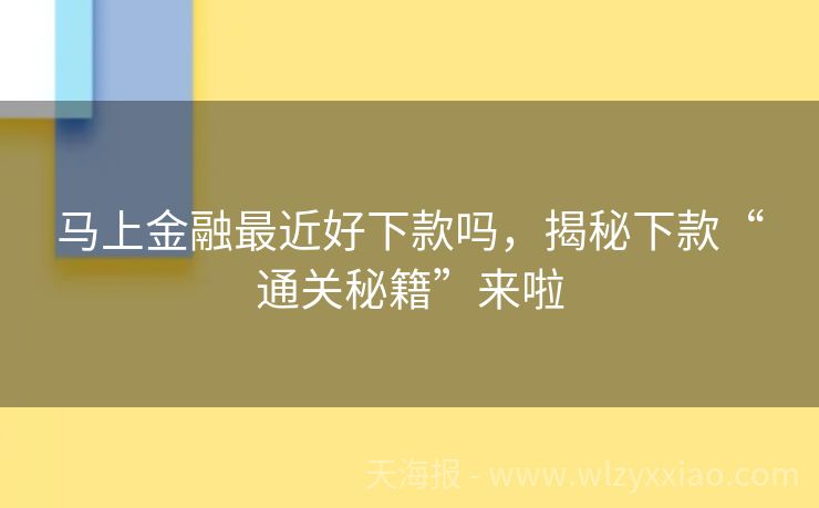 马上金融最近好下款吗,揭秘下款“通关秘籍”来啦 马上金融最近好下款吗?揭秘贷款申请的“通关秘籍” 最近身边总有朋友问我:“马上金融最近好下款吗?”看着他们一脸期待又有点小焦虑的样子,我就知道,这又是被贷款申请“拿捏”住的小伙伴啦!今天咱们就来好好唠唠马上金融的下款情况,顺便分享一些贷款申请的小妙招,让你轻松“通关”! 贷款申请的“小插曲” 我有个...