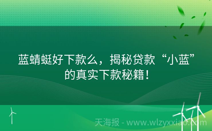 蓝蜻蜓好下款么,揭秘贷款“小蓝”的真实下款秘籍! 蓝蜻蜓好下款么?揭秘贷款江湖里的“小蓝秘籍” 在贷款江湖里,总有些名字像武侠小说里的高手,让人一听就心生好奇——比如“蓝蜻蜓”。这名字听起来清新脱俗,仿佛贷款也能像夏日午后的一阵微风,轻轻拂过你的钱包。但蓝蜻蜓好下款么?别急,咱们先讲个小故事,再慢慢聊。 小李的“蓝蜻蜓”奇遇记 小李是个刚毕业的大学...
