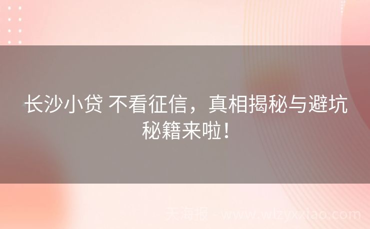 长沙小贷 不看征信,真相揭秘与避坑秘籍来啦! 长沙小贷“不看征信”?真相与避坑指南来啦! 在长沙这座充满烟火气的城市里,不少朋友偶尔会遇到资金周转的小难题。这时候,“长沙小贷不看征信”的宣传语就像一颗糖,甜得让人心动。但别急着伸手,这糖里可能藏着小刺儿呢!今天咱们就来聊聊这“不看征信”的小贷,到底靠不靠谱,怎么选才安全! 小李的“不看征信”奇遇...