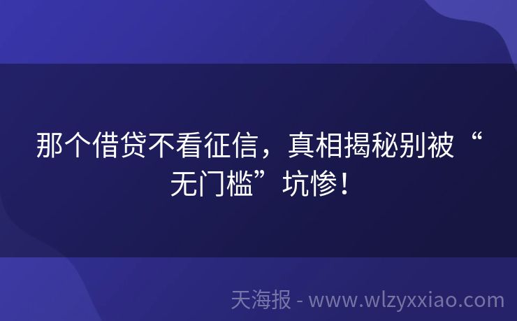 那个借贷不看征信,真相揭秘别被“无门槛”坑惨!