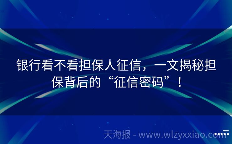 银行看不看担保人征信,一文揭秘担保背后的“征信密码”!