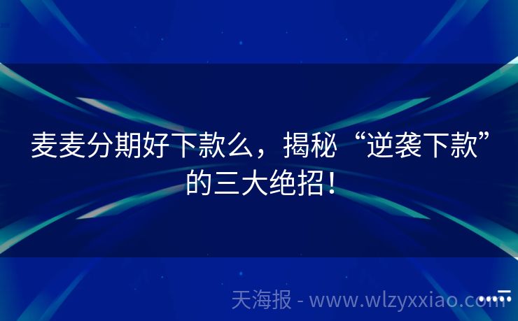 麦麦分期好下款么,揭秘“逆袭下款”的三大绝招!