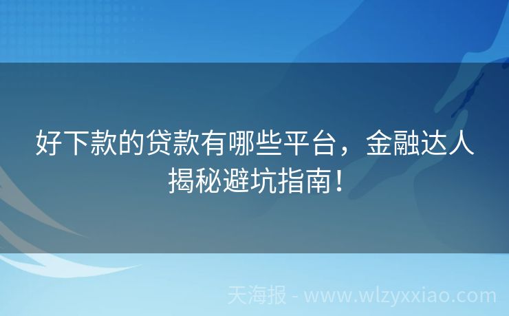 好下款的贷款有哪些平台,金融达人揭秘避坑指南!