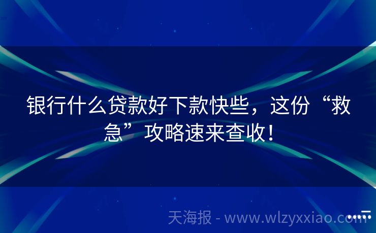 银行什么贷款好下款快些,这份“救急”攻略速来查收!