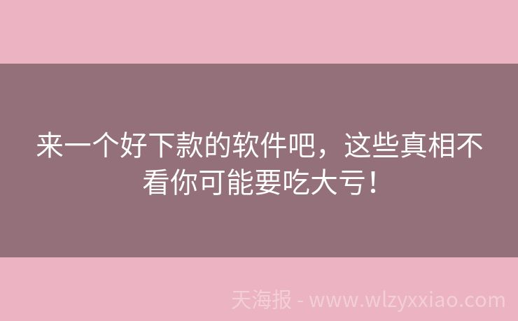 来一个好下款的软件吧,这些真相不看你可能要吃大亏!