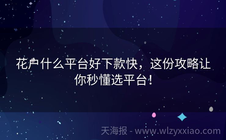 花户什么平台好下款快,这份攻略让你秒懂选平台!