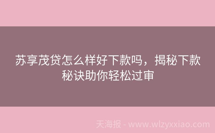 苏享茂贷怎么样好下款吗,揭秘下款秘诀助你轻松过审