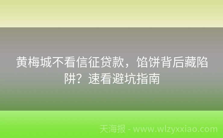 黄梅城不看信征贷款,馅饼背后藏陷阱?速看避坑指南