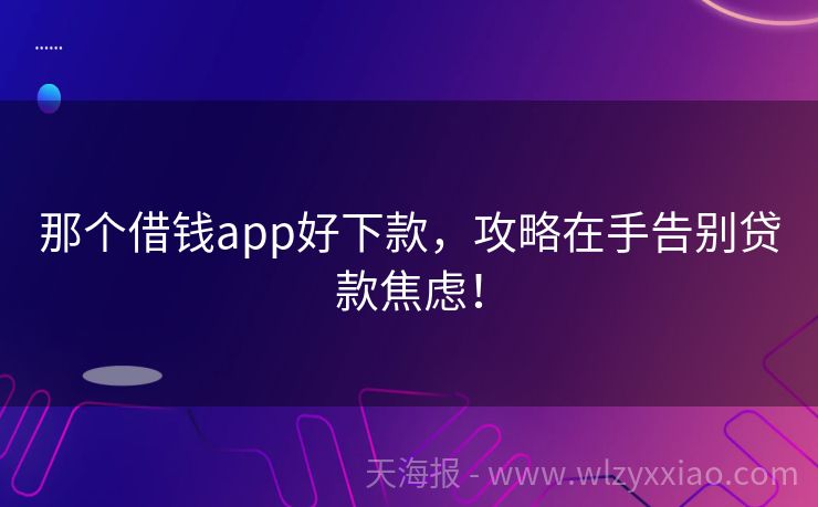 那个借钱app好下款,攻略在手告别贷款焦虑!