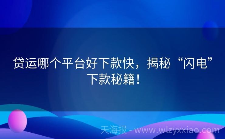 在这个快节奏的时代,连借钱都要讲究“快、准、狠”!你是不是也经常遇到这样的尴尬时刻:急需用钱,却像热锅上的蚂蚁,急得团团转,却不知道哪个贷款平台能快速下款?别急,今天咱们就来聊聊这个话题,看看贷运哪个平台好下款快,让你轻松摆脱资金困境!