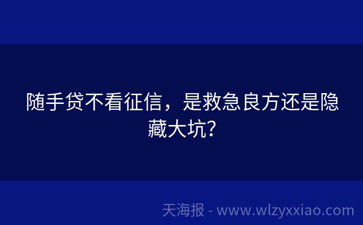 随手贷不看征信,是救急良方还是隐藏大坑?