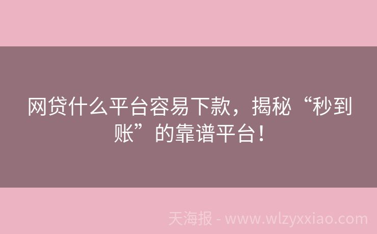 网贷什么平台容易下款,揭秘“秒到账”的靠谱平台!